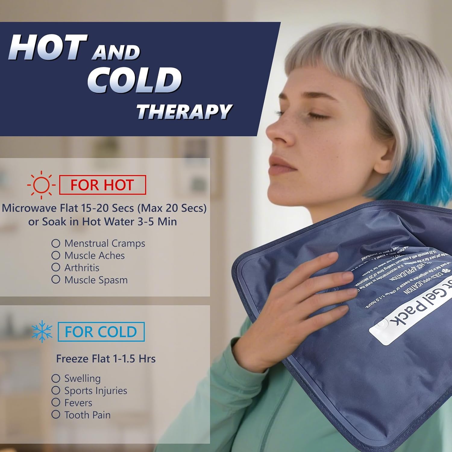 - Long-Lasting Cold Retention: Our high-density gel ice pack stays colder longer than regular ice packs, delivering extended soothing relief. The reusable cold pack maintains optimal therapeutic temperature while remaining flexible - excellent for muscle recovery or joint pain relief session after session