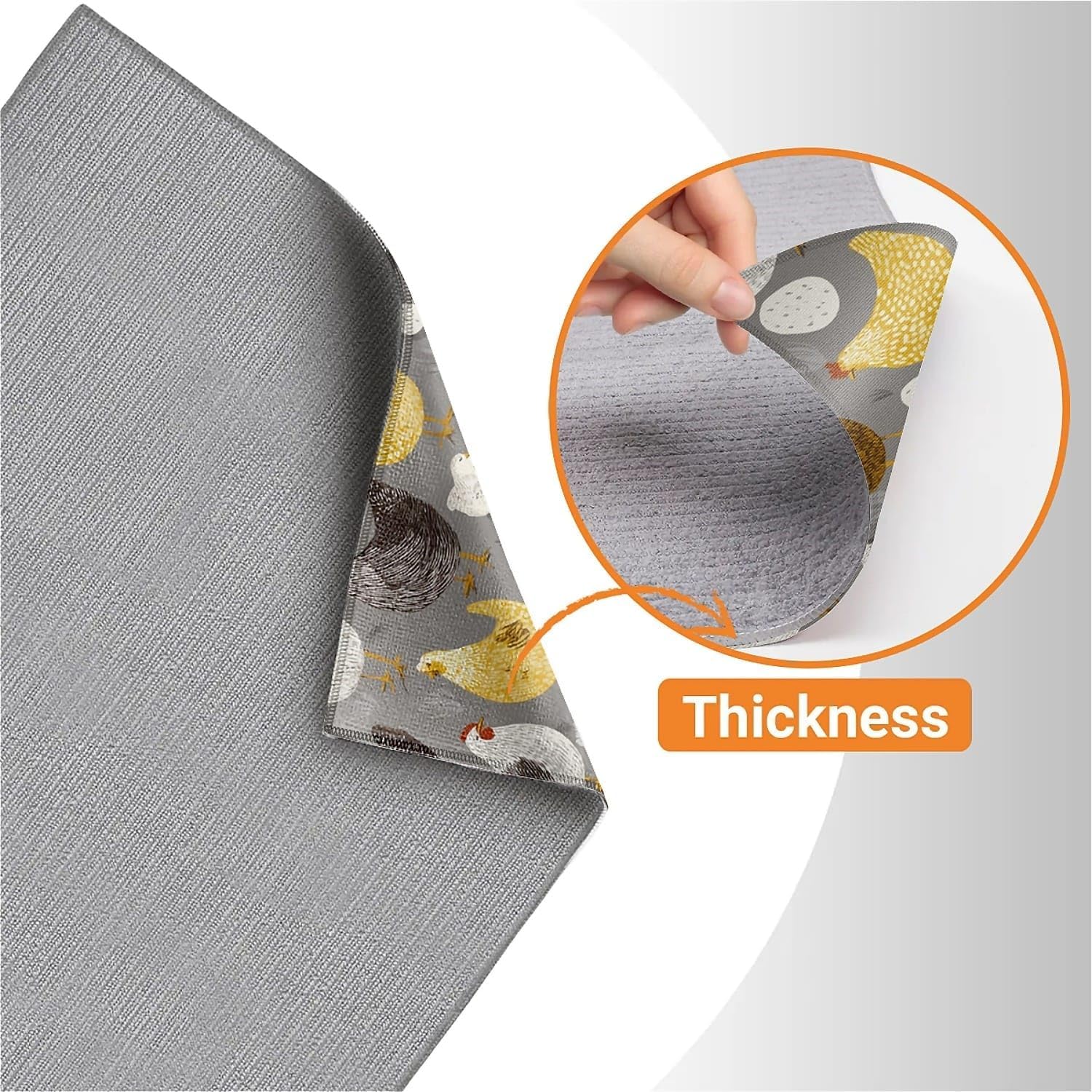 Dish Drying Mat For Kitchen Counter, Hens Roosters Chicken Microfiber Absorbent Dish Drainer Rack Pad Reusable Large 18x24in Drying Mat