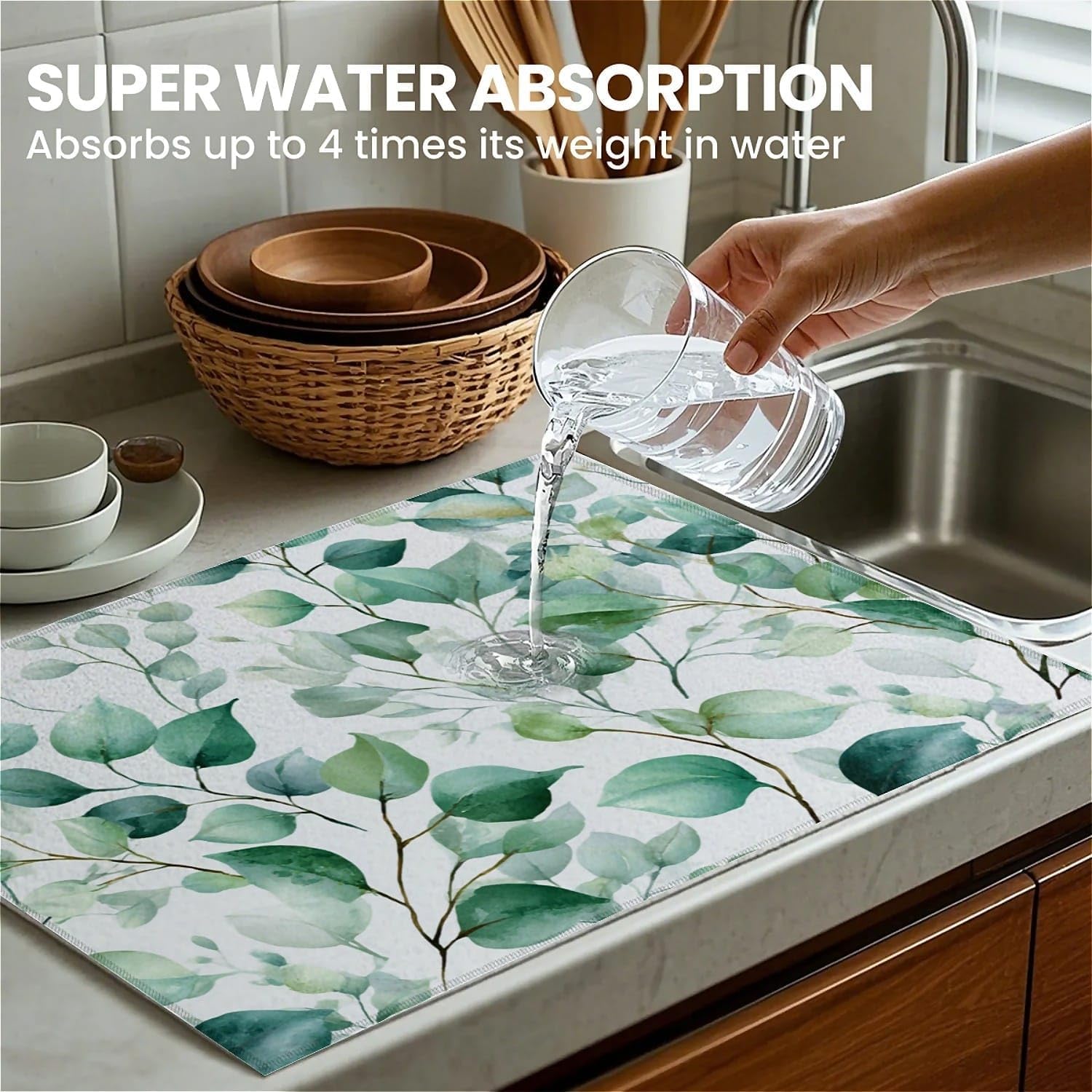 - 【Super Absorbent】Our dish drying mat is made of durable microfiber on both sides and can absorb up to 4 times its weight in water. SAY GOODBYE TO WATER - Drying mat will absorb all the moisture left on dishes, glasses, silverware, pans, pots and pans, fruits and vegetables