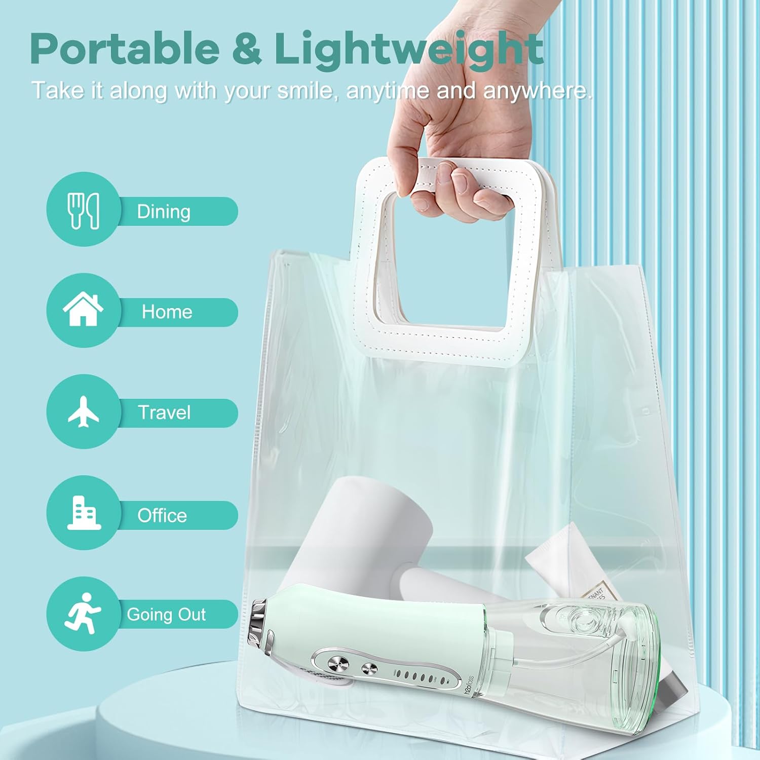 H2ofloss Water Dental Flosser Teeth Pick: Portable Cordless Oral Irrigator with 5 Modes, 300ML Rechargeable Travel Irrigation Cleaner IPX7 Waterproof Electric Flossing Machine for Teeth Cleaning Green