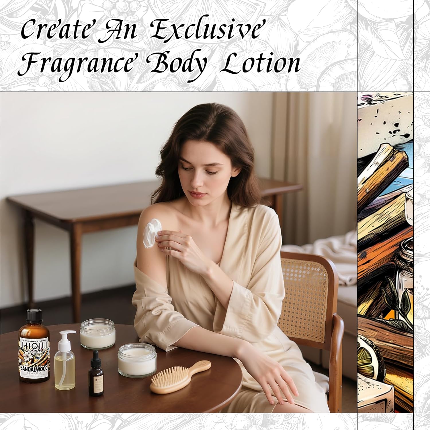 HIQILI Sandalwood Fragrance Oil for Home Diffuser, Luxury Hotel Scent, Perfect for DIY Candle & Soap Making, Add to Body Lotion - 1 Fl Oz