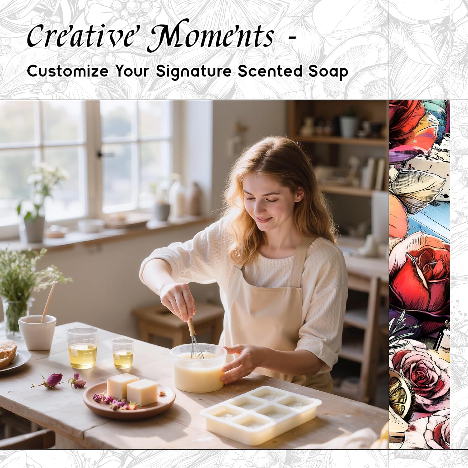 - Enchanting Rose Aroma: A warm floral scent with sweet, romantic notes that evoke a blooming rose garden