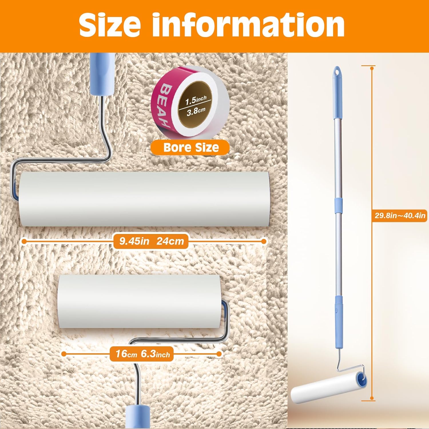 - Detachable Extendable Aluminum Alloy Handle & Dual Rollers:Durable aluminum alloy handle extends up to 40.4" to reach high spots like curtains and ceiling corners, and detaches when not needed for portable cleaning. Two roller sizes ensure versatile use—perfect for clothing, furniture, carpets, and even car seats.