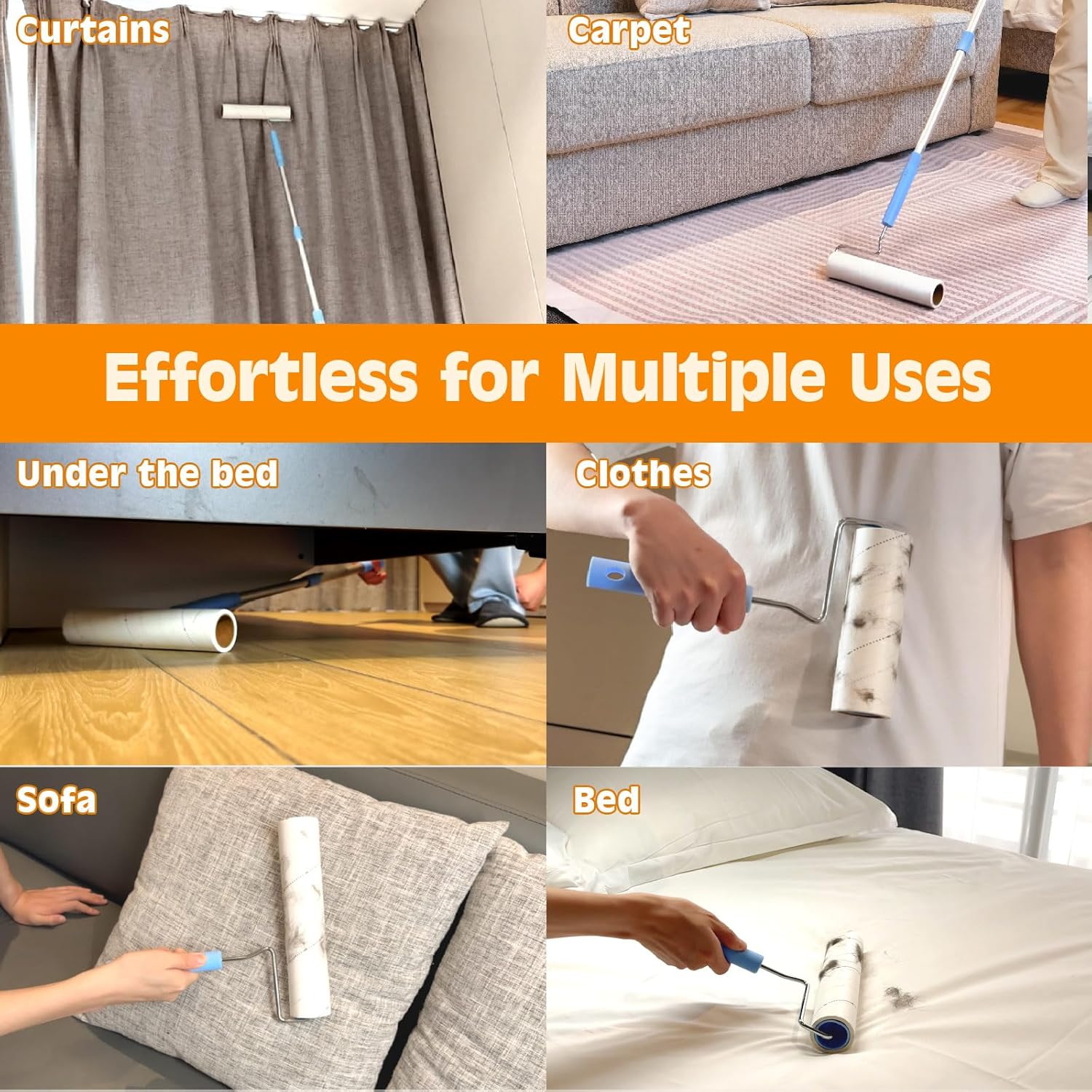 - Extra-Wide Sticky Sheets & High Capacity:This lint roller comes with 4 wide 9.45-inch adhesive rolls and 1 narrow 6.3-inch roll,providing exceptional coverage for large surfaces like bedding and sofas while the smaller roller handles delicate areas,with generous sheet counts in each roll ensuring long-lasting use before replacements are needed.