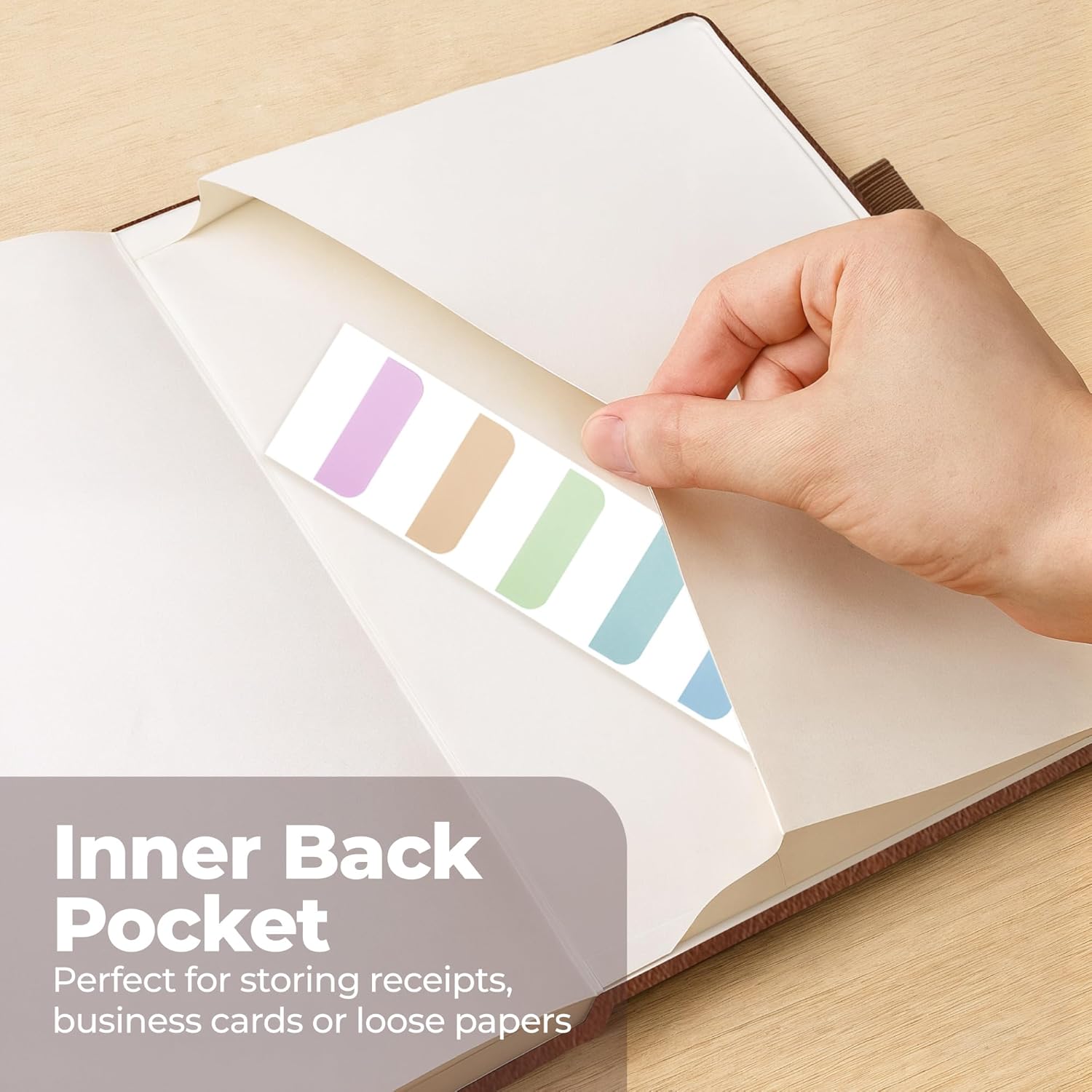 - DURABLE AND PREMIUM LEATHER-FEEL HARDCOVER FOR EVERYDAY USE – Elevate your writing experience with our A5 5.8x8.3” hardcover notebook with college ruled pages and inner back pocket! The sturdy, non-bending leather hardcover features the luxurious feel and subtle marbling texture you love! And the thread-bound spine keeps pages firmly in place for years. Its timeless, professional look makes it perfect for work meetings, personal journaling, and gifting.