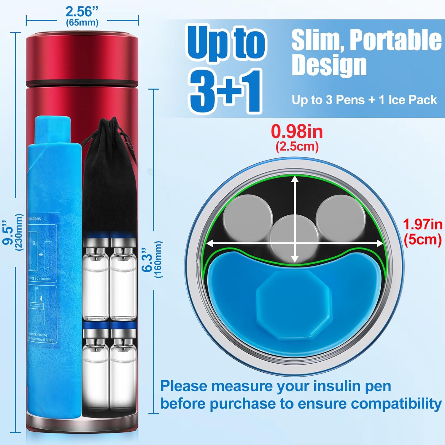 - 【Fits 2–3 Insulin Pens or Vials – Compact Yet Spacious】- Hold up to 3 insulin pens or medicine vials, this compact insulin pen cooler travel case is perfect for your daily use or multi-day trips. Compatible with most popular insulin pen models on the market