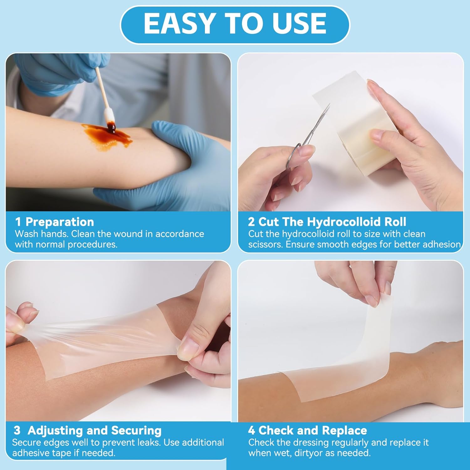 - Customizable Application - Hydrocolloid roll can be cut to different sizes and shapes according to the wounds for personalized cover