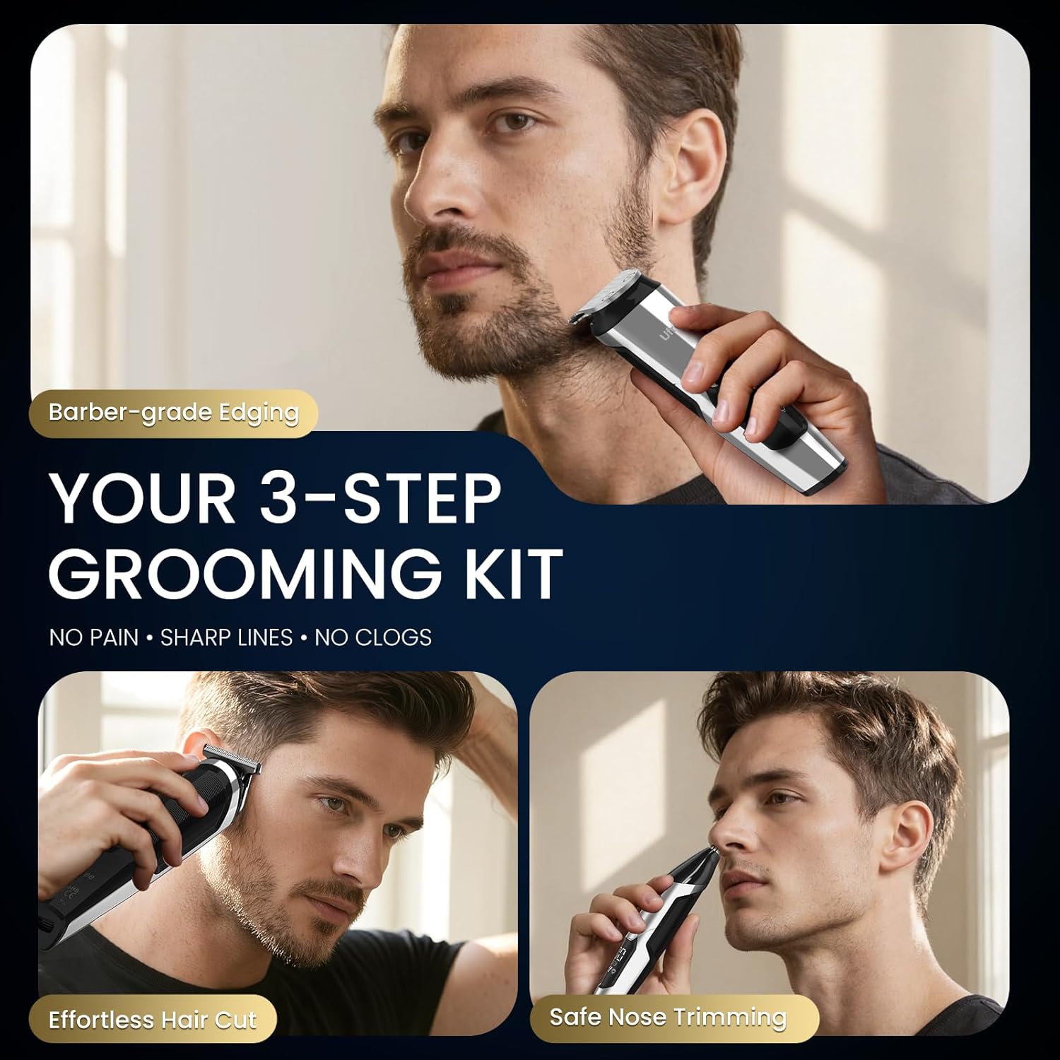 Ufree 3-in-1 Beard Trimmer Kit, Men's Electric Shaver Razor for Mustache Body Nose Facial Hair, Professional Hair Trimmer, Rechargeable Clippers, Waterproof Beard Grooming, Birthday Gifts for Men