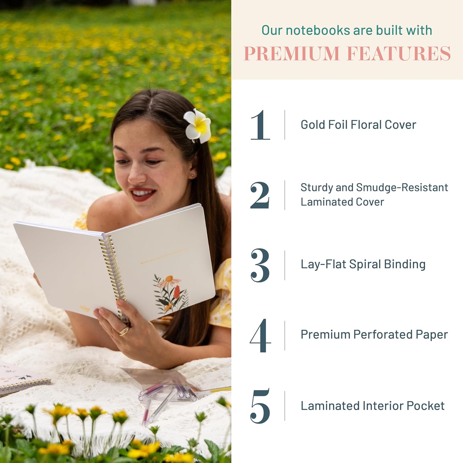 - Compact & Travel-Friendly: The handy 6.25” x 8.25” size strikes the perfect balance between portability and writing space. Our lightweight floral notebook easily fits into your bag or backpack, so your notes are always within reach.