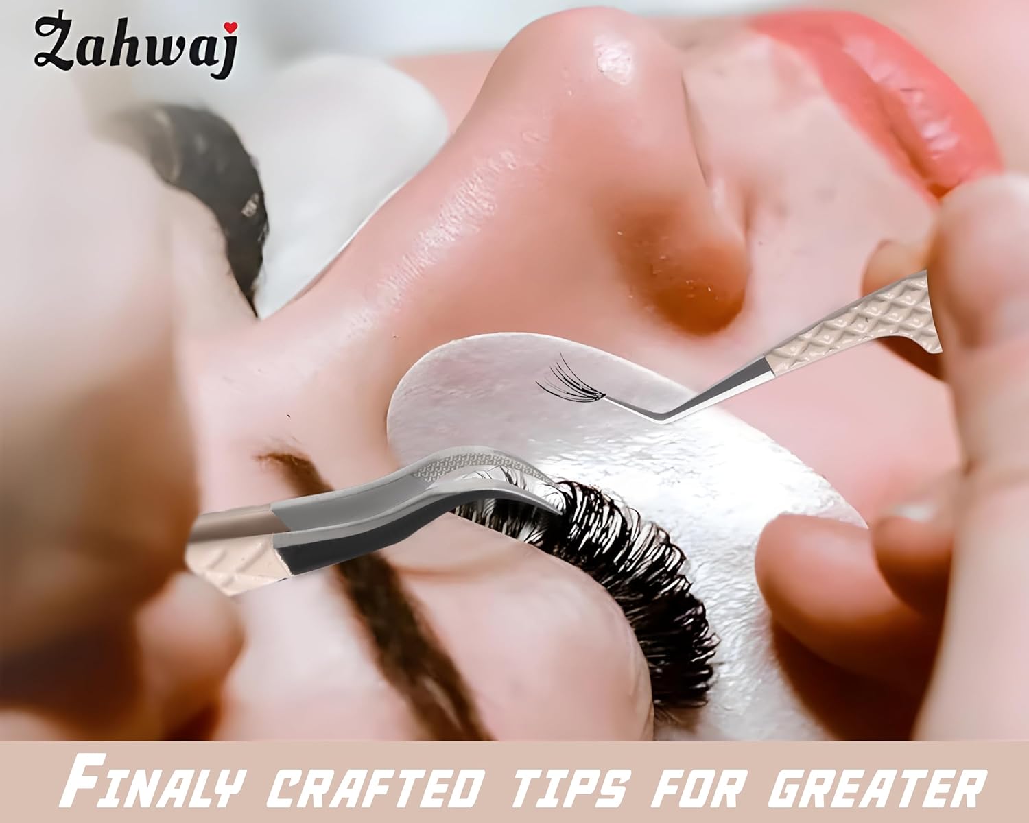 - Easy To Use: ZAHWAJ fiber tip lash tweezers for eyelash extensions are highly recommended for everyone, including eyelash experts, technicians, and beginners. Our each eyelash tweezers set consists of high-quality steel that cater to all your lash extension needs.