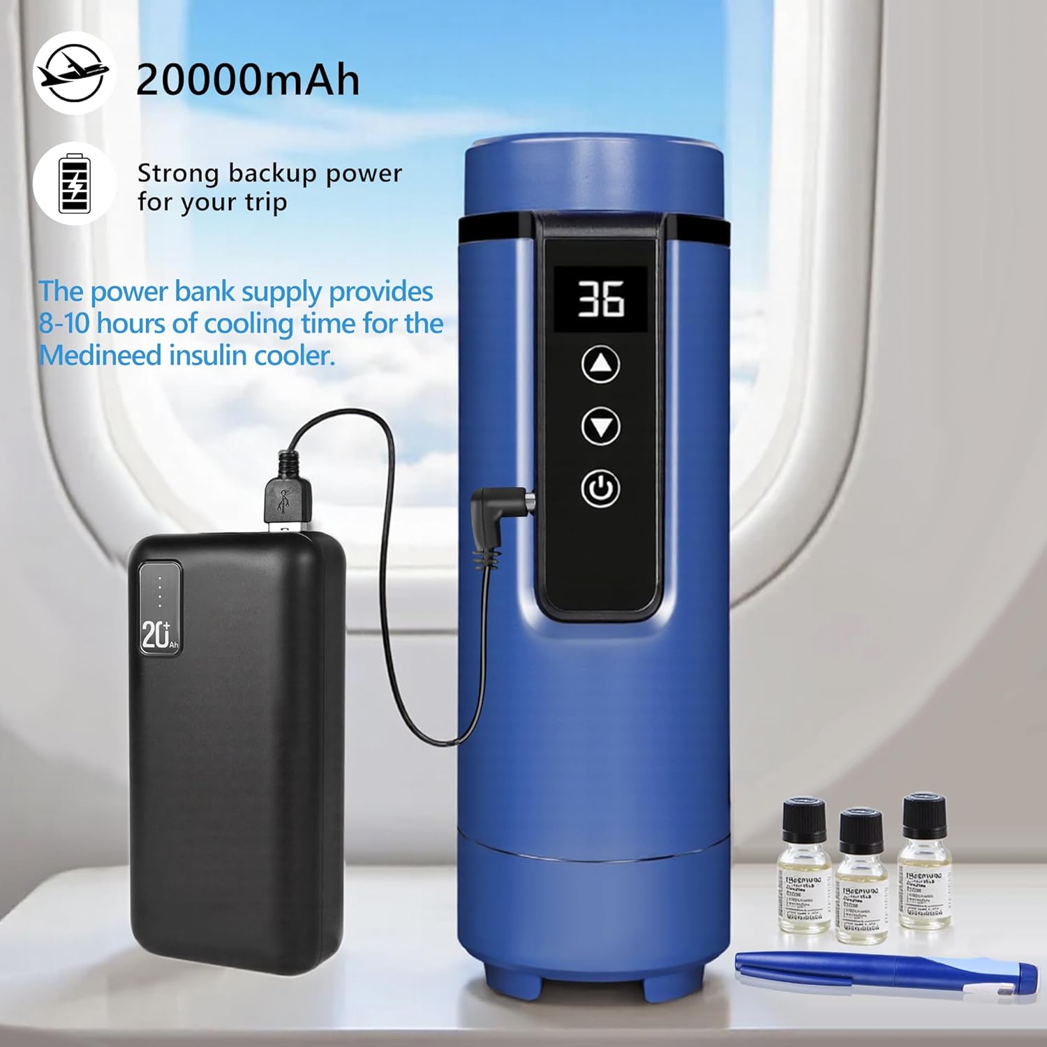 - PORTABLE TRAVEL: The medication cooler for travel is TSA approved, and protective cup cover bag can hold the diabetes care cooler and powerbank, making your traveling more convenient; The matching 20,000mAh portable power bank supply provides 8-10 hours of cooling time for the Medineed insulin cooler