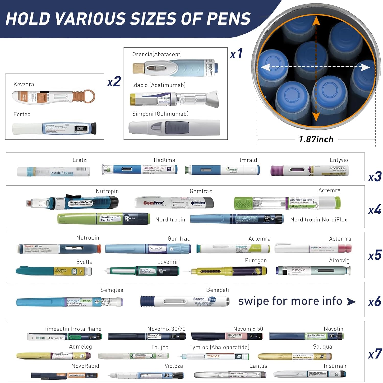 - LARGE CAPACITY: The diabetic supplies cooler has a large storage space inside, which can hold up to 7 standard insulin pens, just like a walking medicine refrigerator; Notes: Cooler should not be placed in luggage when energized, need to be ventilated