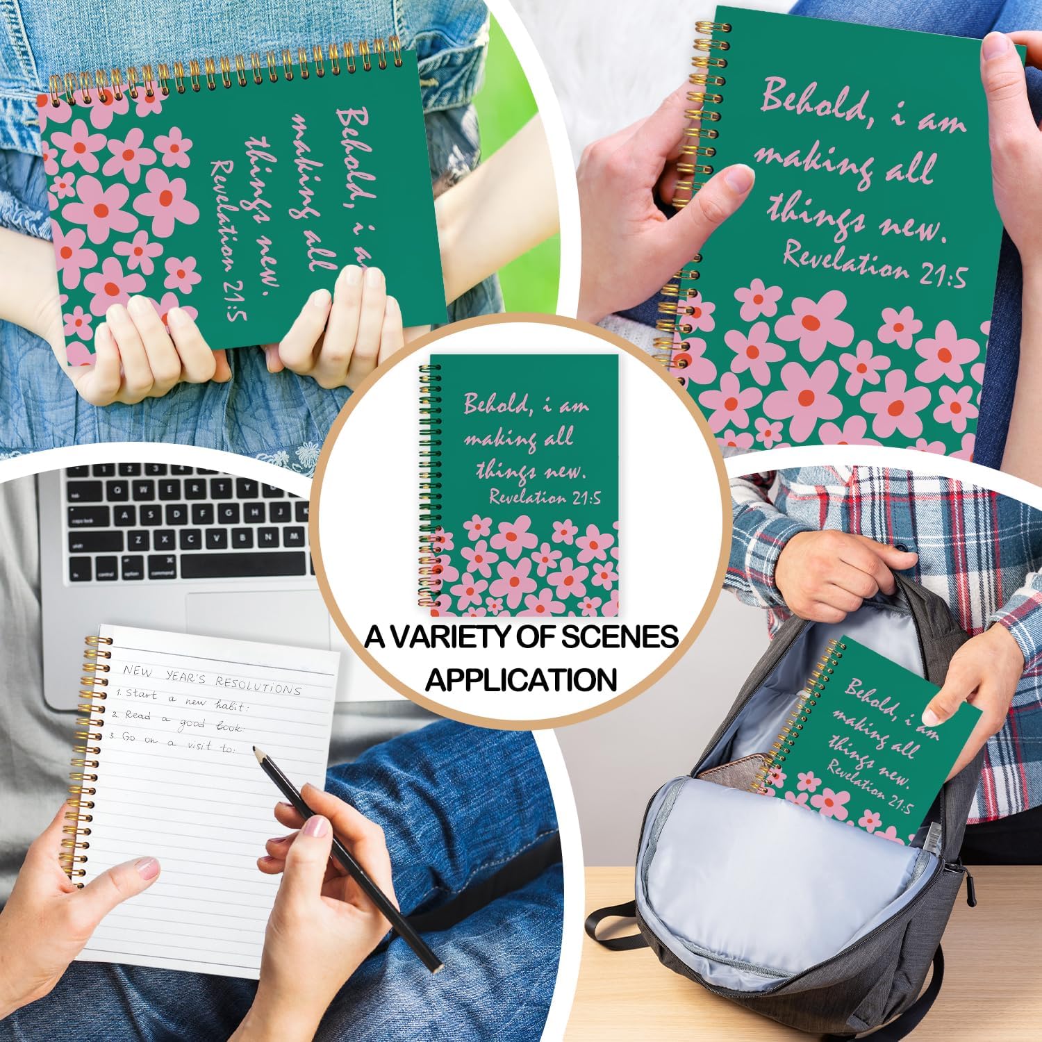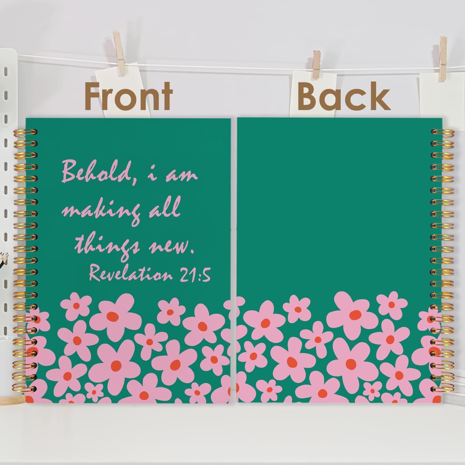 Inspirational Green Floral Christian Spiral Journal Notebook 5.5x8.3in, Prayer Bible Journal for Woman, Revelation 21:5 Bible Notebooks for Note Taking, Religious Hardcover Notebook