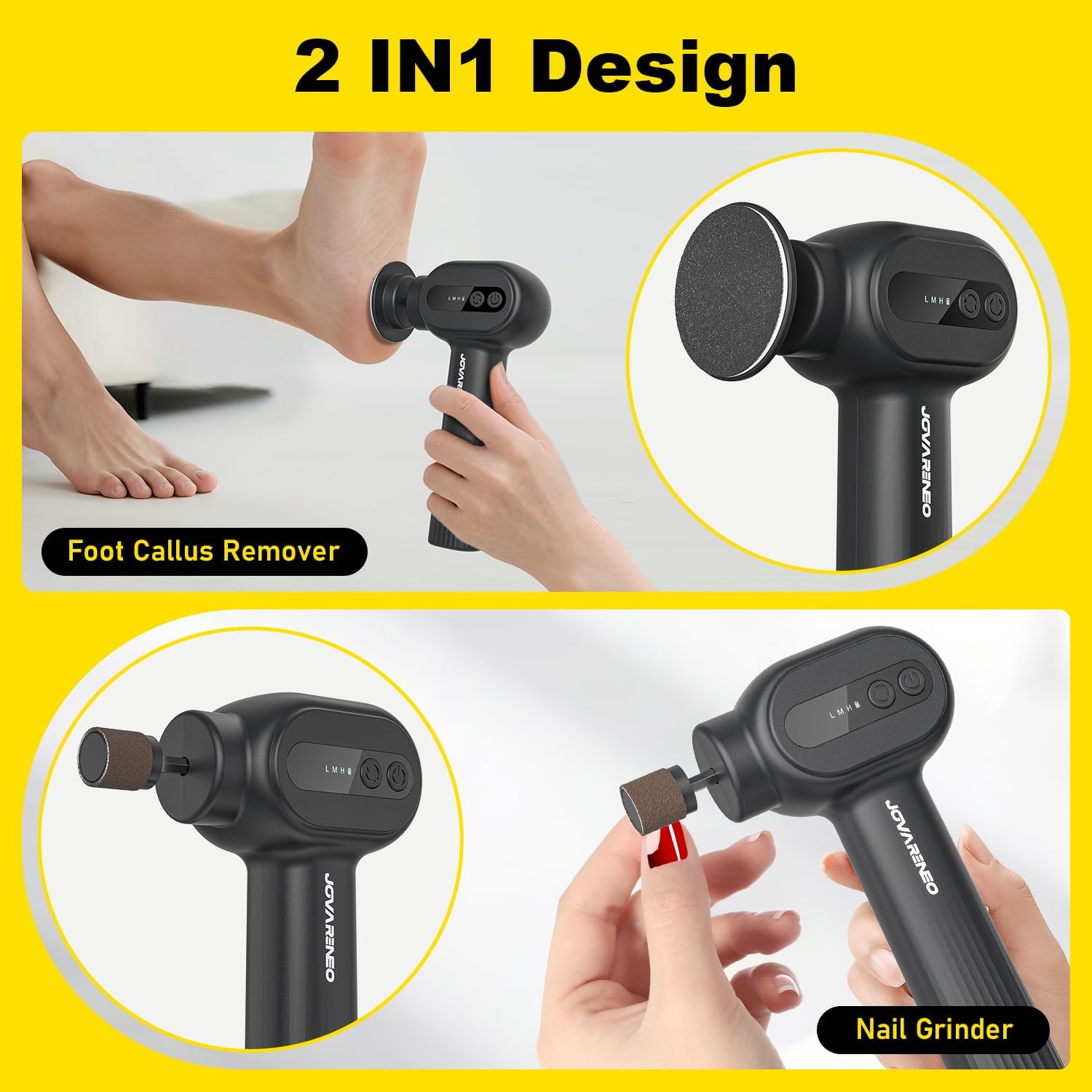 - 【2-in-1 for Foot and Nail Care】 More than a foot callus remover, it also includes a dedicated head for nail care. Use it to polish nails, smooth rough edges, and clean up cuticles or hangnails—just like a nail buffer. Whether you're handling cracked heels or tidying fingernails, this tool combines foot scrubber, callus shaver, and nail file functions in one.