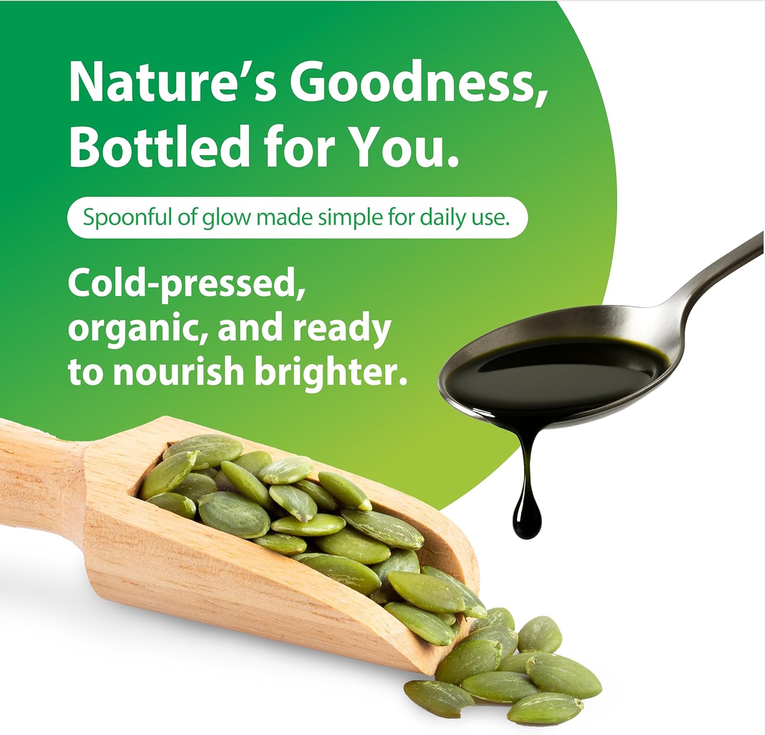 - Convenient Liquid Oil – Delivers 14 g of Organic Extra Virgin Pumpkin Seed Oil per tablespoon—ideal for daily use with meals.