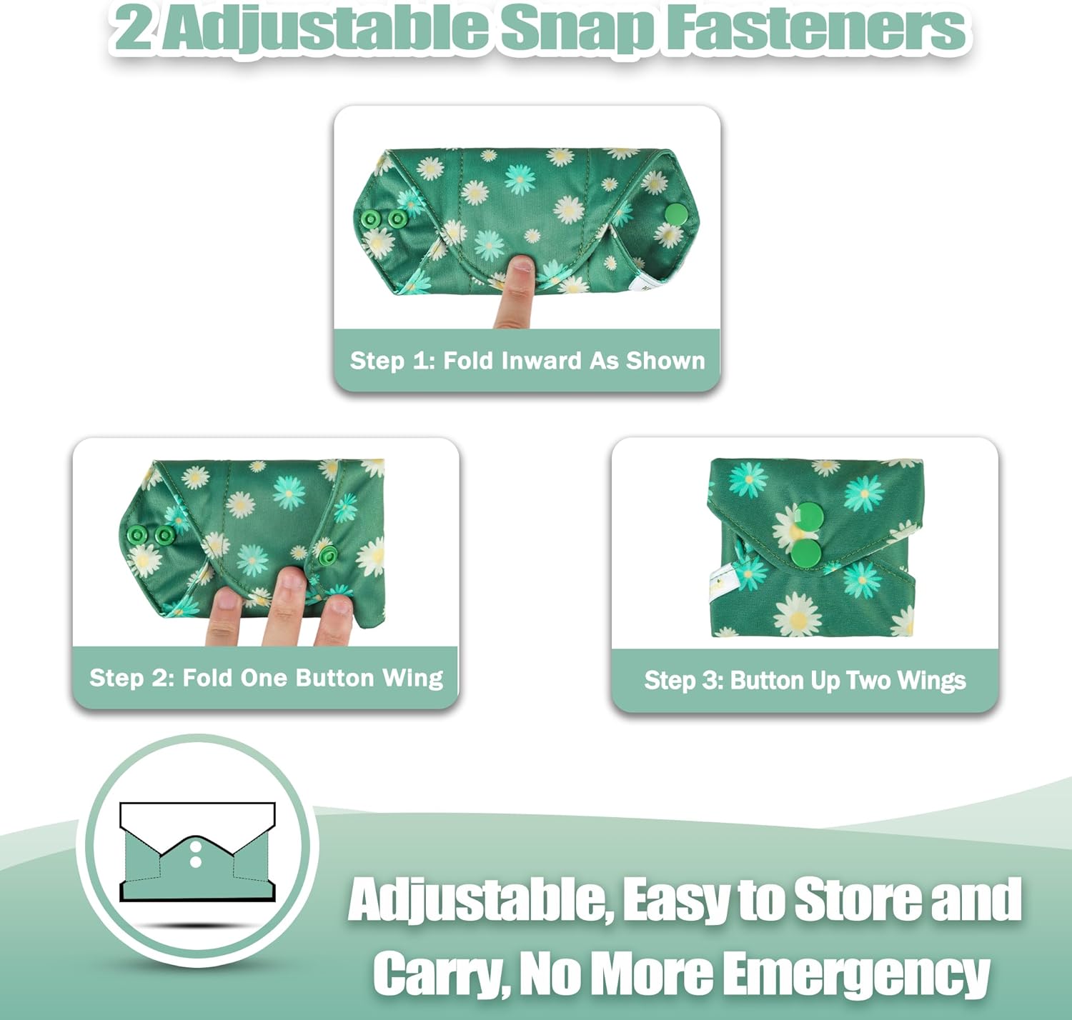 - LOVELY PRINT leak-free outer of Cloth Sanitary Napkin and comfort of the softer, charcoal layer against your skin; Great as period panties too; Fold over and snap into place; Never feel embarrassing