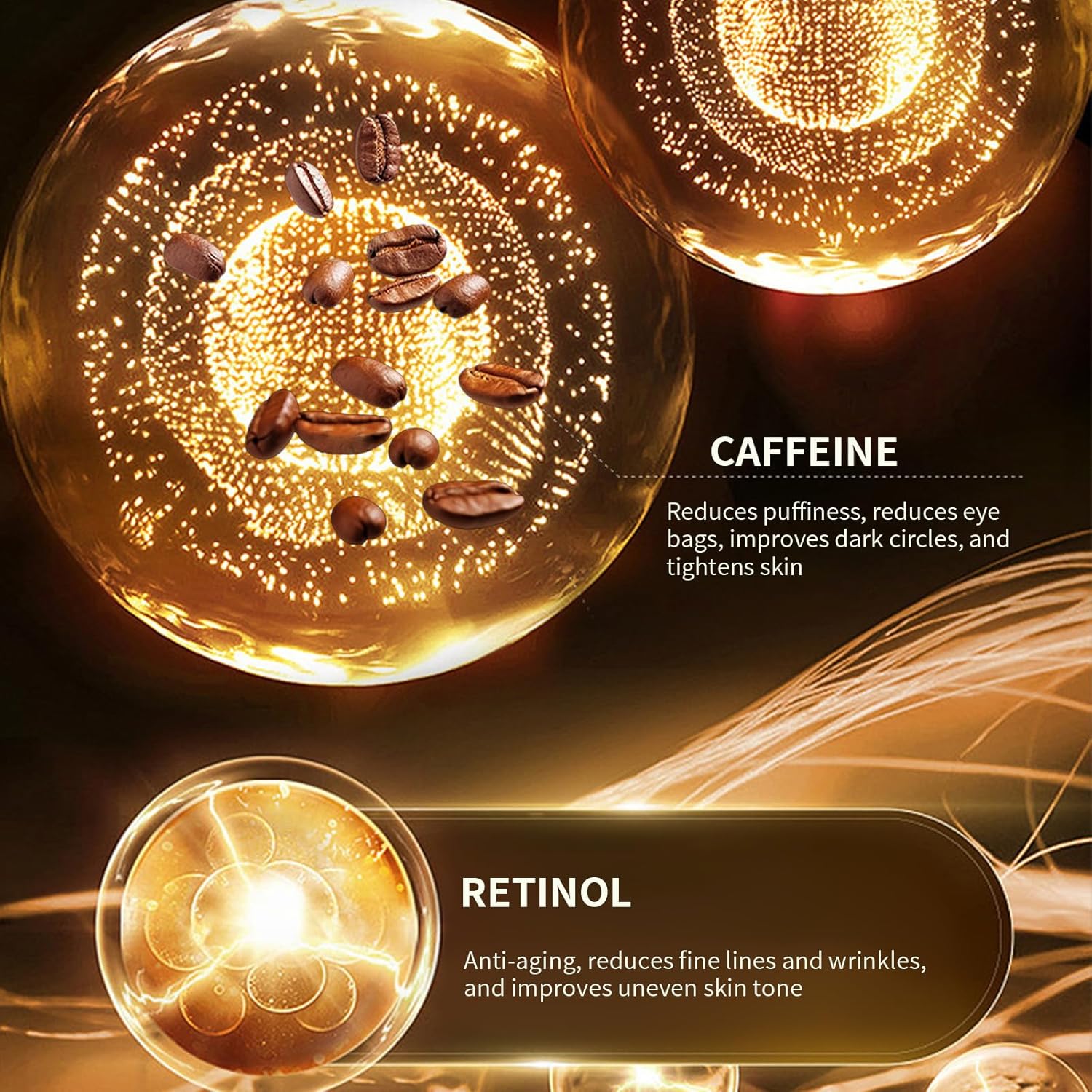 - Lighten dark circles and fine lines: Rich in active repair ingredients such as caffeine and retinol, it effectively lightens dark circles and fine lines, makes the skin around the eyes tighter and smoother, and protects your eyes