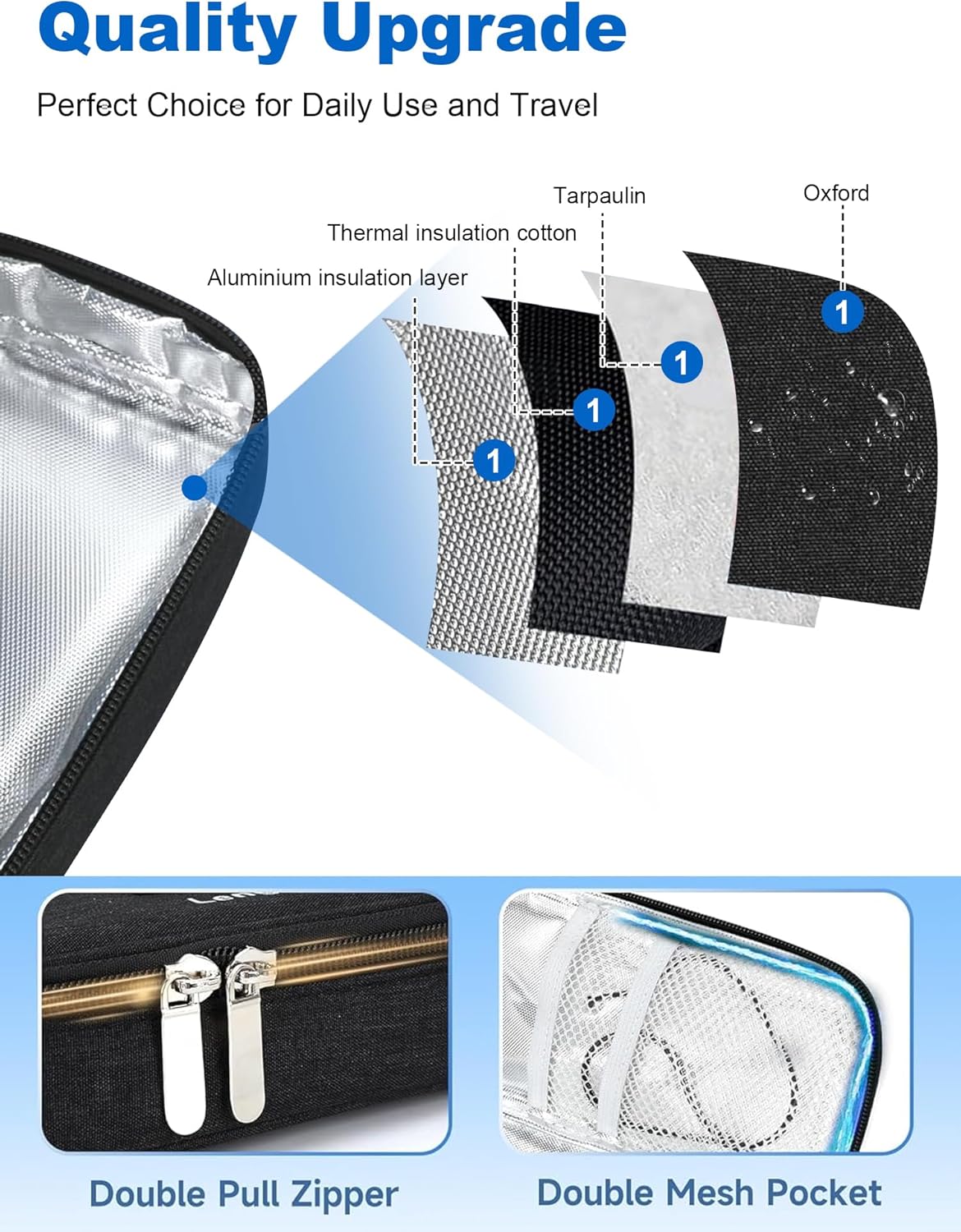 - Premium Protection: 600D Oxford shell + 4mm insulation foam shields medication from heat, physical shock, water, and stains. This travel bag is also equipped with strong carry handle and double zippers, which allows you to carry easier and access your insulin faster!