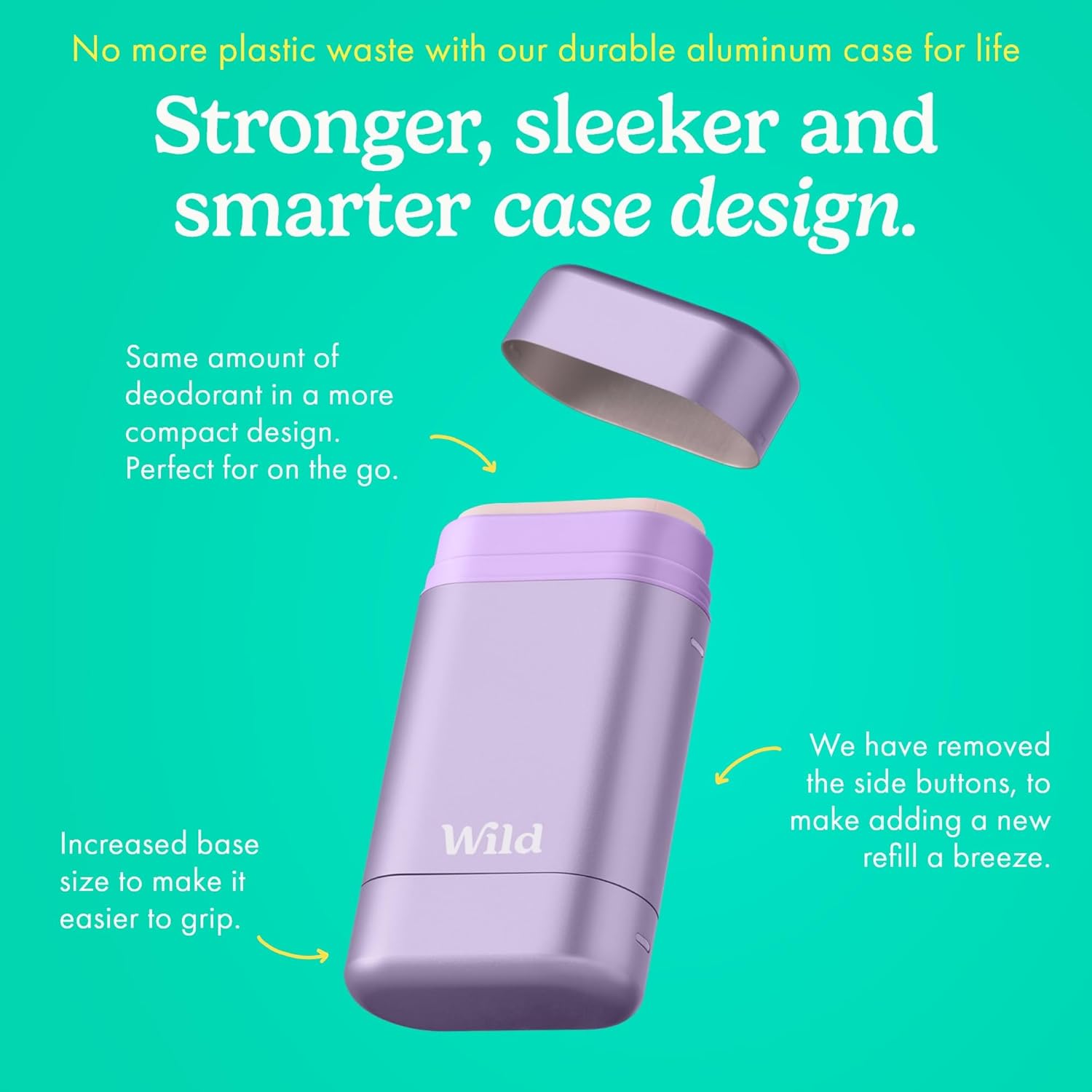 Wild Refillable Deodorant Starter Kit with Purple Case and Honey & Cactus Flower Scented Refill 1.4oz - Aluminum Free - Long Lasting Protection - Vegan