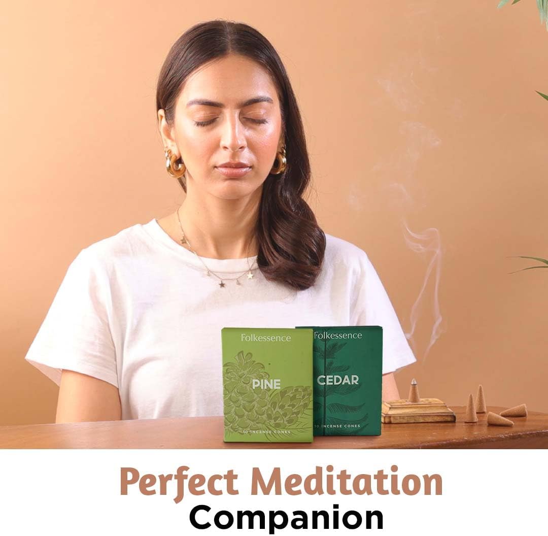 Folkulture Incense Cones for Waterfall | 20 Pc Incense Cone Scented | 2 Fragrance Cone-Insenses - Pine & Cedar | Natural, Non Toxic | Pine & Cedar Inscents-Cones | Relaxing, Meditation, Spiritual