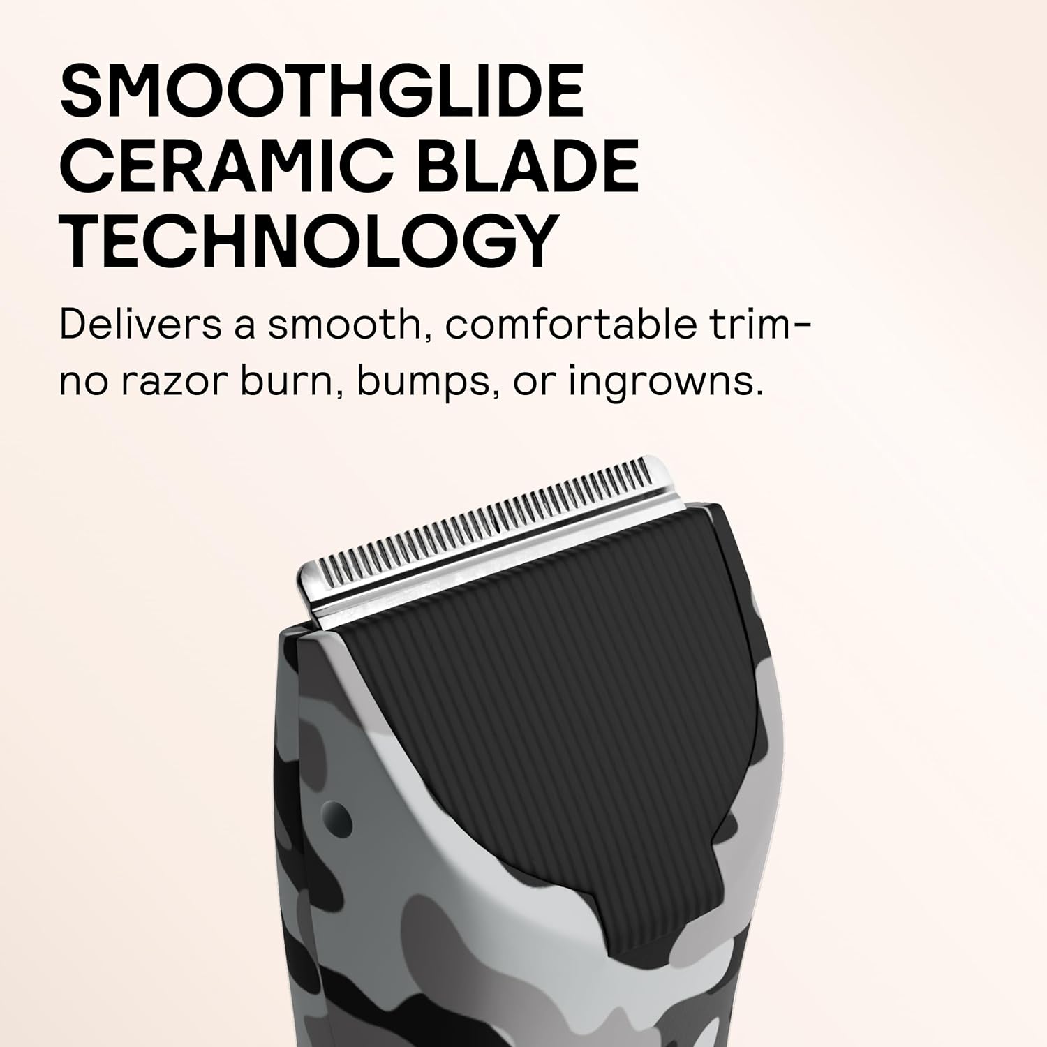 - NO BURNS. NO BUMPS. NO BS: Forget the fear of nicks. Our ceramic blade trims just above the skin—no irritation, no redness, no razor burn, and no ingrown hair. It’s smooth sailing from top to below the belt.