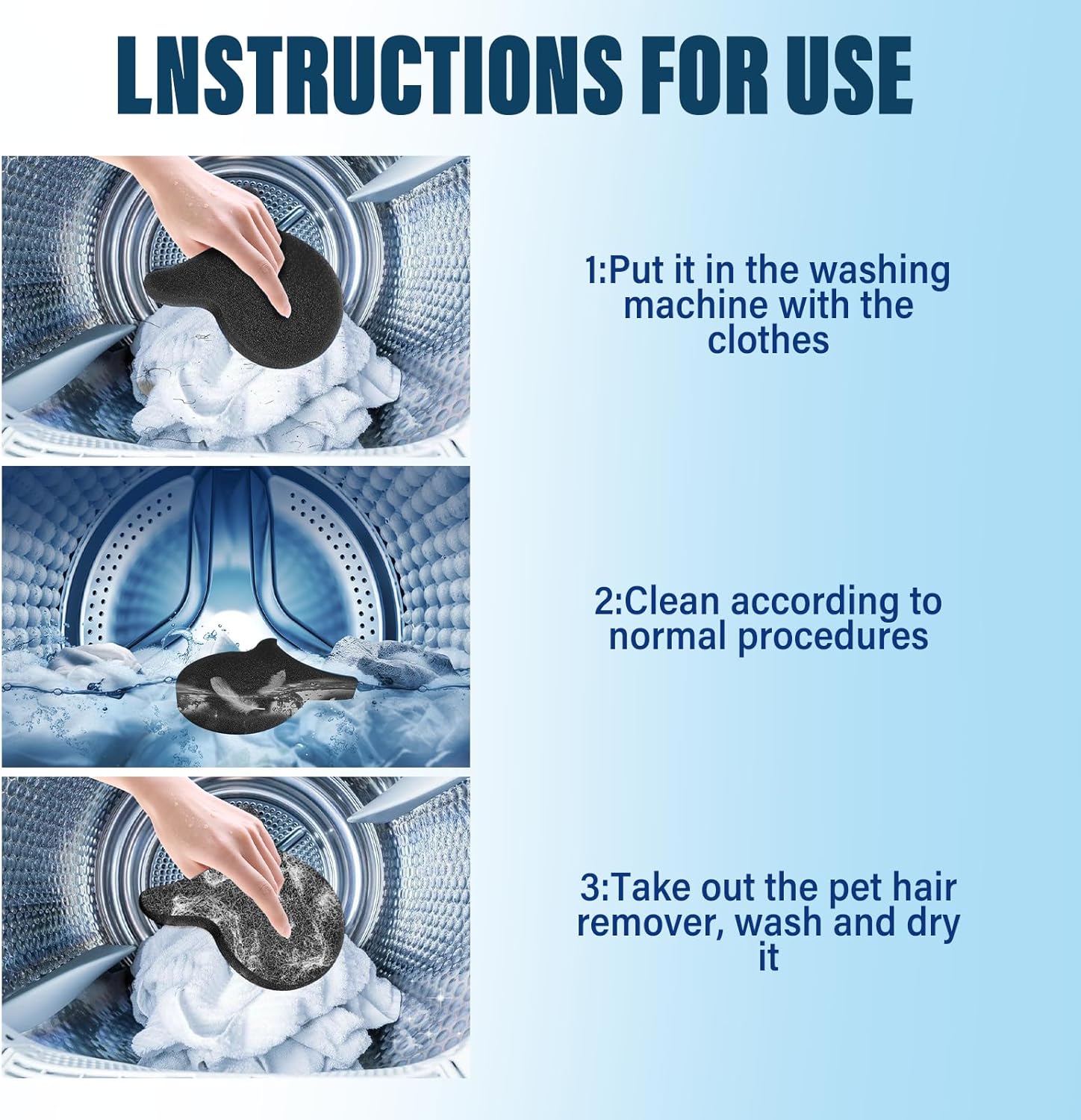 - 【Easy to Use】No more need to de-shed by hand. With our pet hair remover for laundry, all you need to do is to put these pet hair remover for laundry into the washing machine and turn on the spin mode, or you can put it into the dryer with your clothes. Finally, take out the clean clothes. Avoid using fabric softeners or dryers as this will reduce the stickiness.