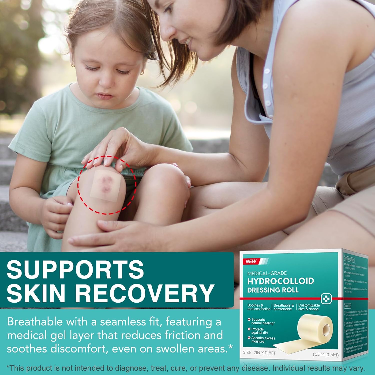 2Pack Hydrocolloid Roll for Wound Care (2IN X11.8FT), Medical Grade Self-Adhesive Hydrocolloid Patch Bandages for Wound Healing,Ultra-Thin & Waterproof, Scar Prevention, Burn Care