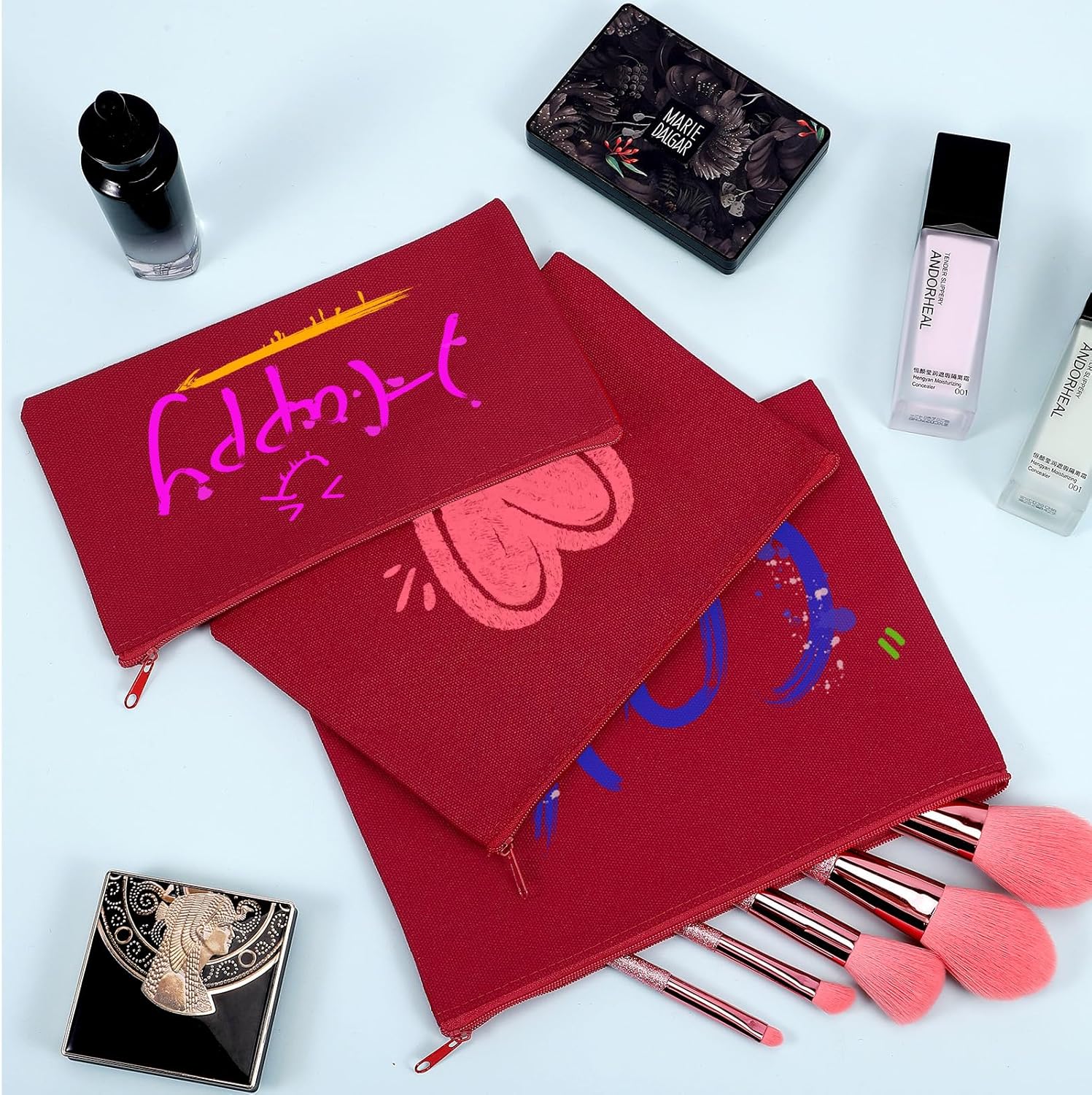 12 Pieces Cotton Canvas Makeup Bag, Multipurpose Cosmetic Bag with Zipper Travel Toiletry Pouch, Blank DIY Craft Bag (Red, S)