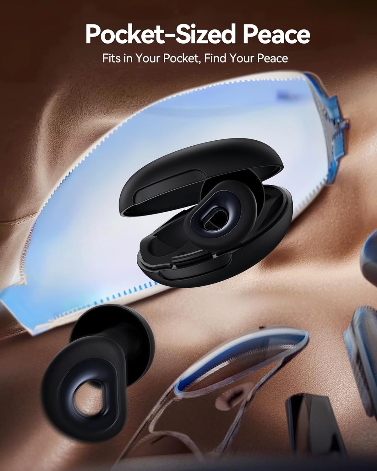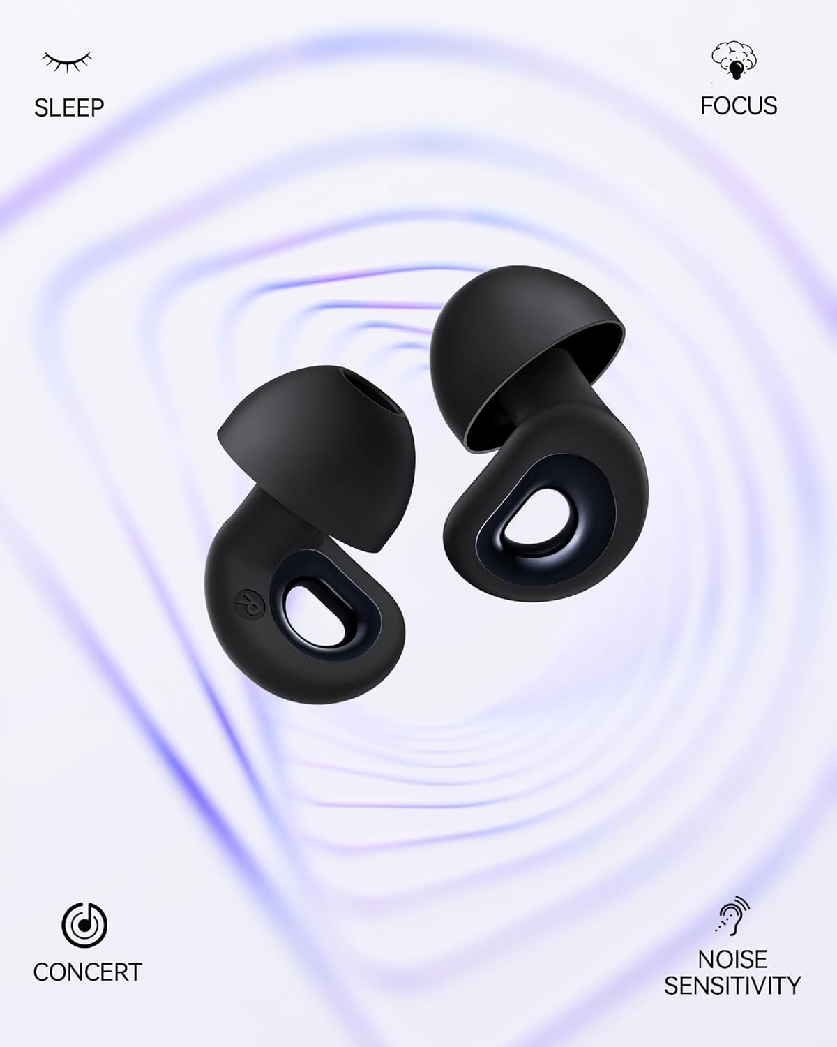 Ear Plugs for Sleeping, 50dB Noise Cancelling Ear Plug with 7 Pairs of Dual Single Layer Tips Reusable Ear Plugs for Noise Reduction, Soft Silicone Earplug for Concert, Snoring, Motorcycle Black