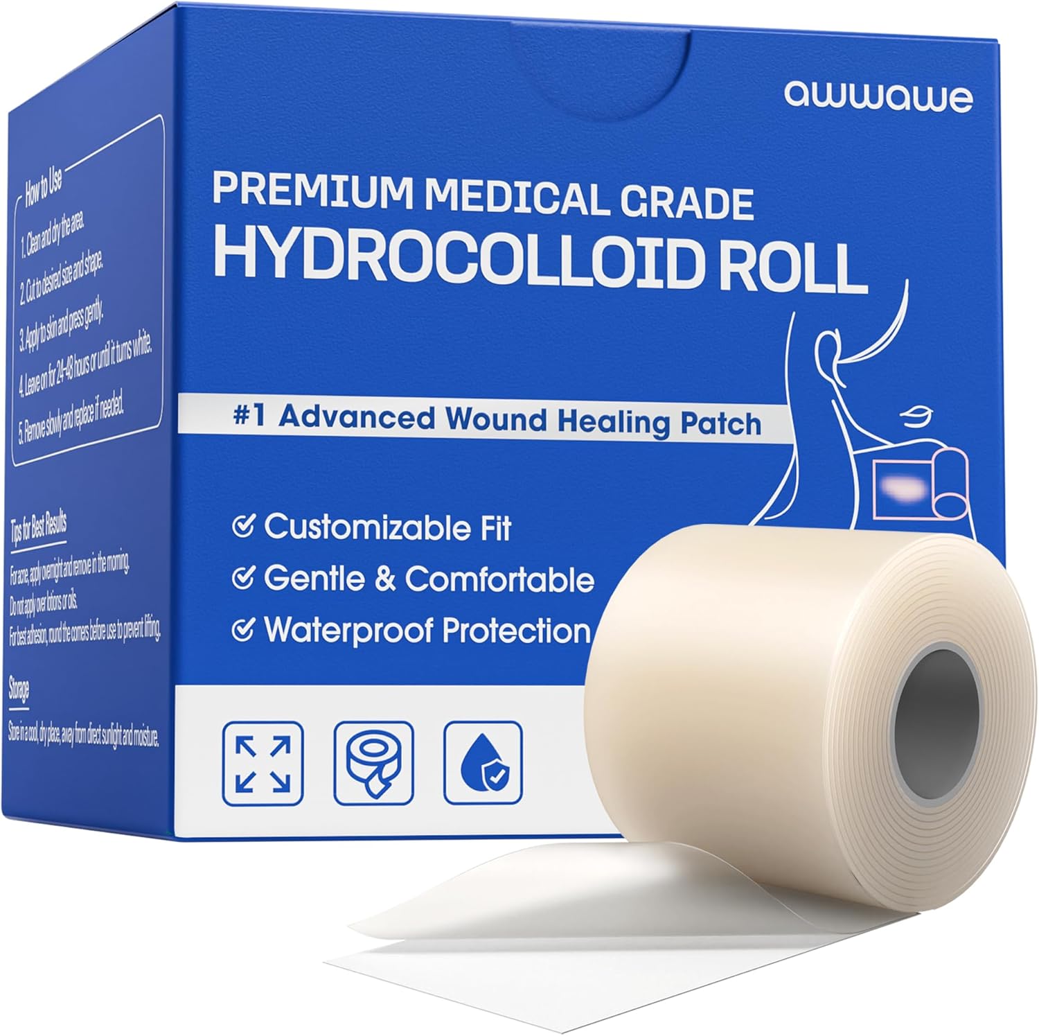 Hydrocolloid Roll – Cut-to-Size Wound Dressing & Pimple Patch for Blister, Acne & Scar Care | Transparent, Waterproof, Skin-Friendly Bandage (2in x 10ft)
