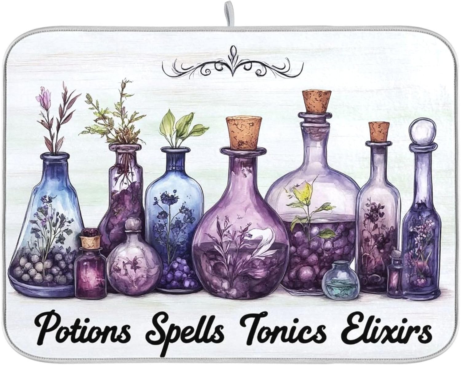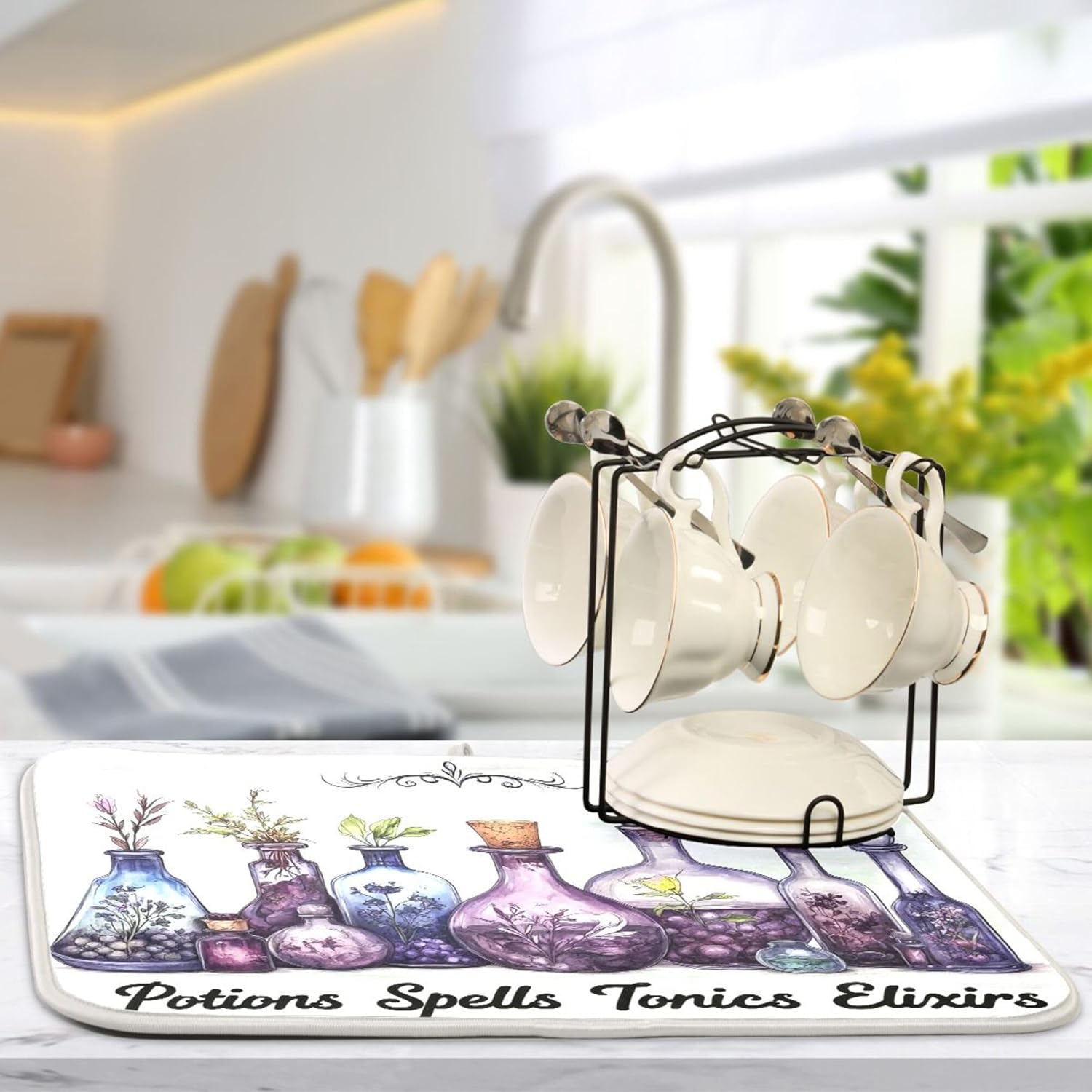 Halloween Potions Dish Drying Mat for Kitchen Countertop 16x18 Witch Herbs Purple Spooky Small Drying Mat Reusable Quick Dry Dish Sink Mats Easy Clean Decorative Essentials