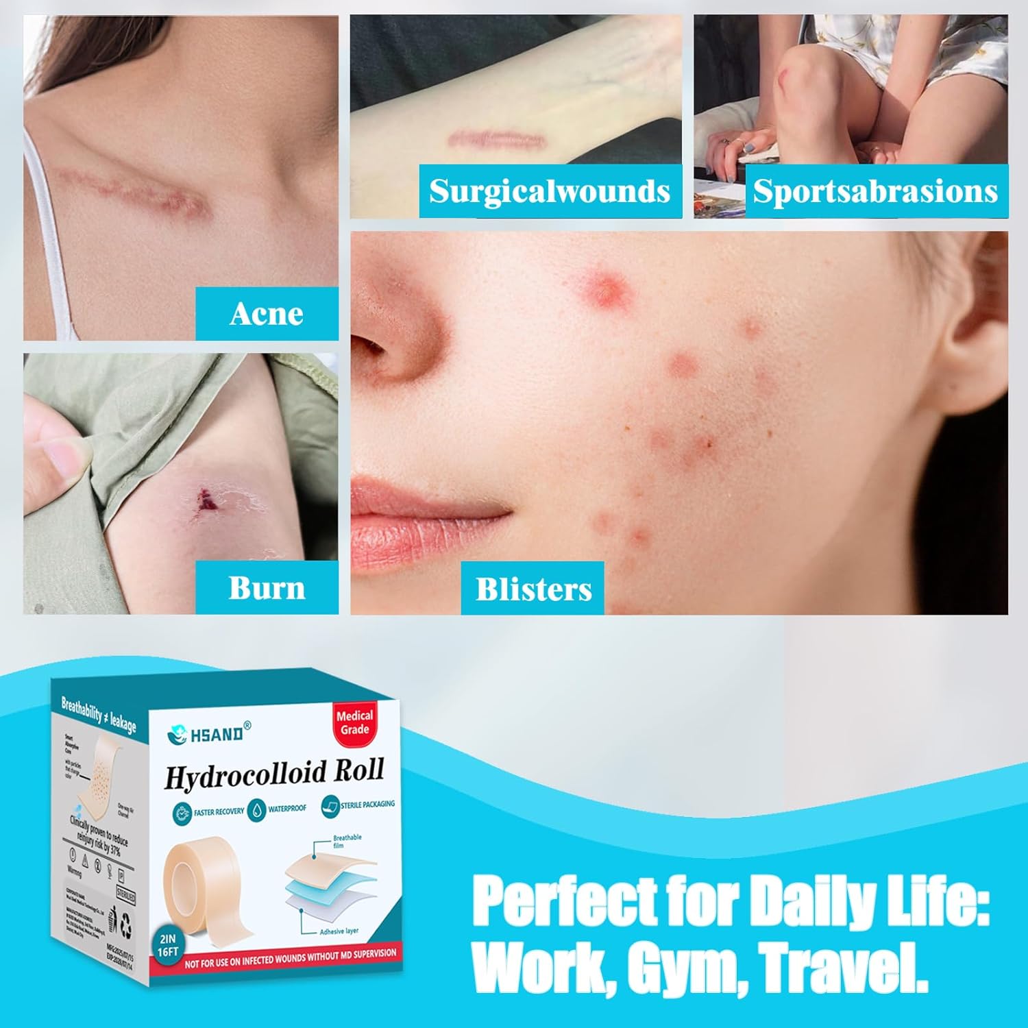 - 【2-in-1 DIY Hydrocolloid Roll Value Pack】Includes: (1) 2in x 16ft pre-cut hydrocolloid roll + (1) free travel-size foil pouch. Cut to fit any area—cost-effective for long-term use vs single-use hydrocolloid bandages.